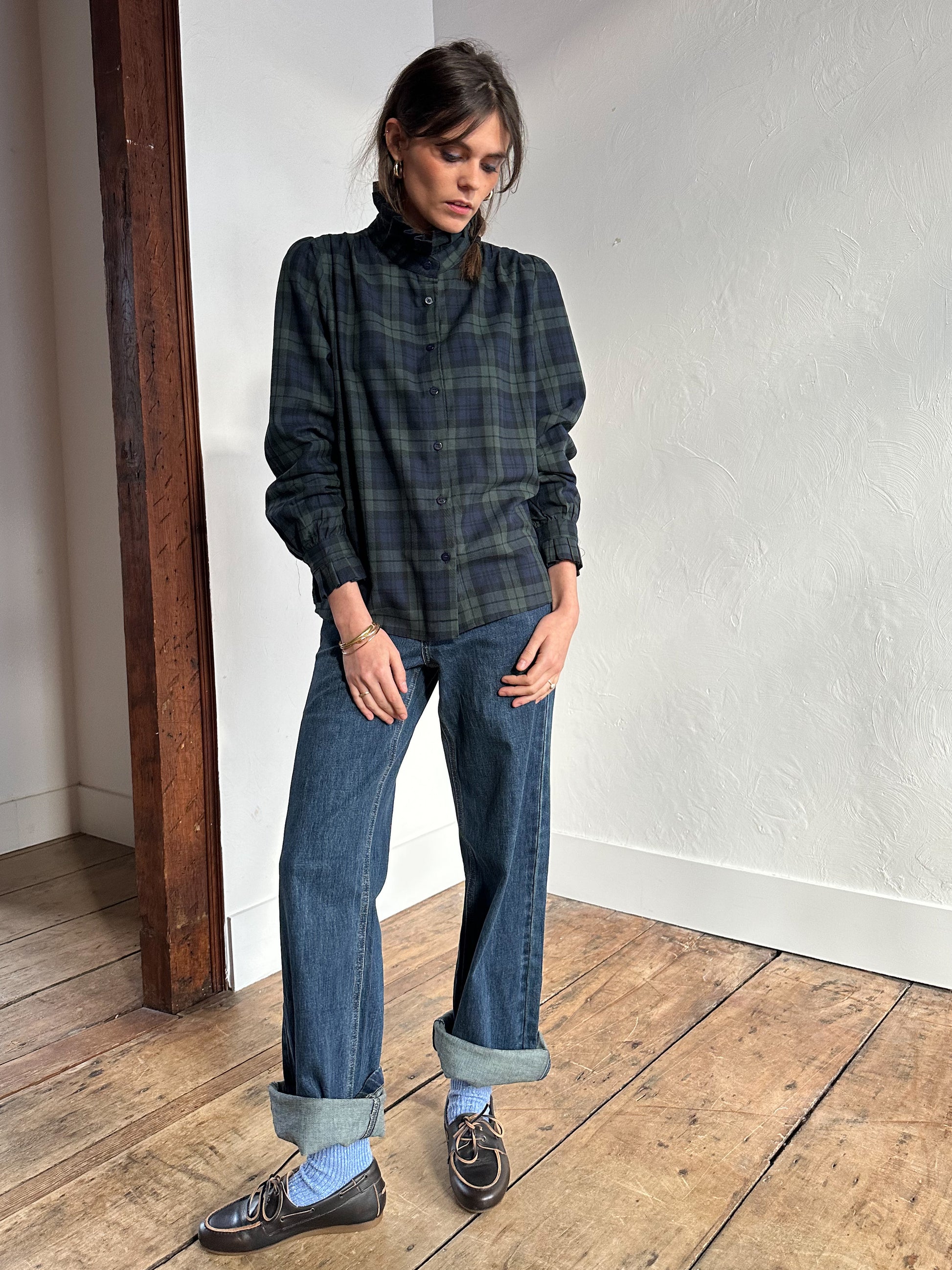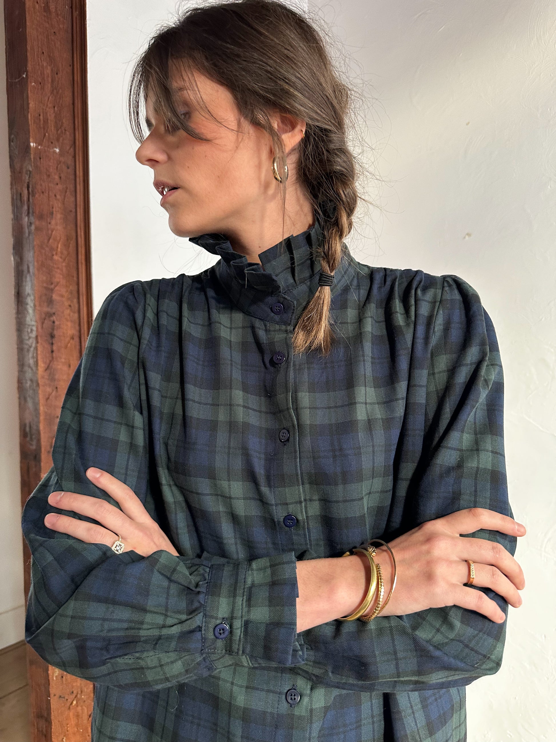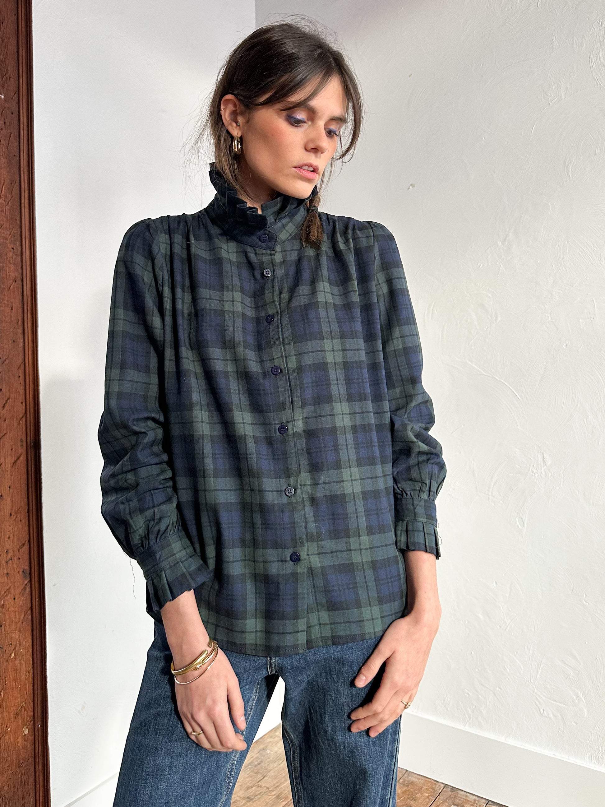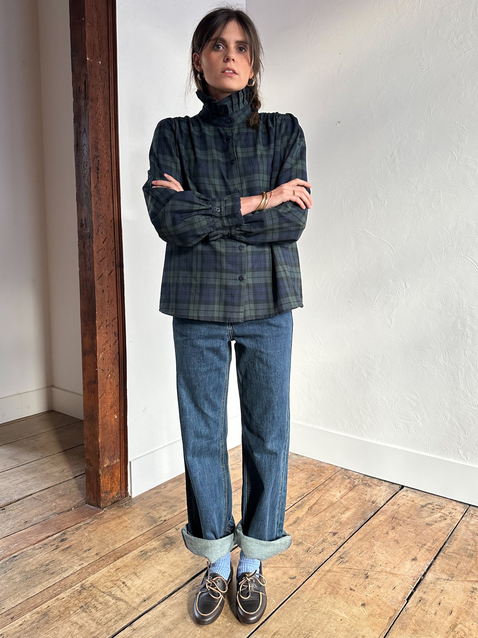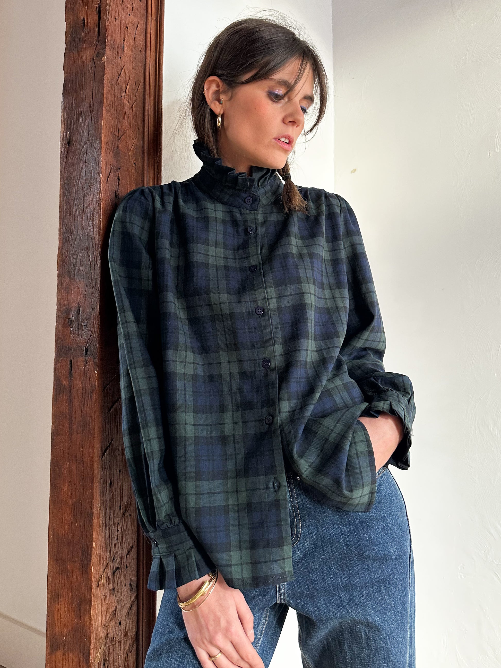The ROBERT shirt offers a retro-chic style thanks to its blue and Green Scottish tartan pattern.