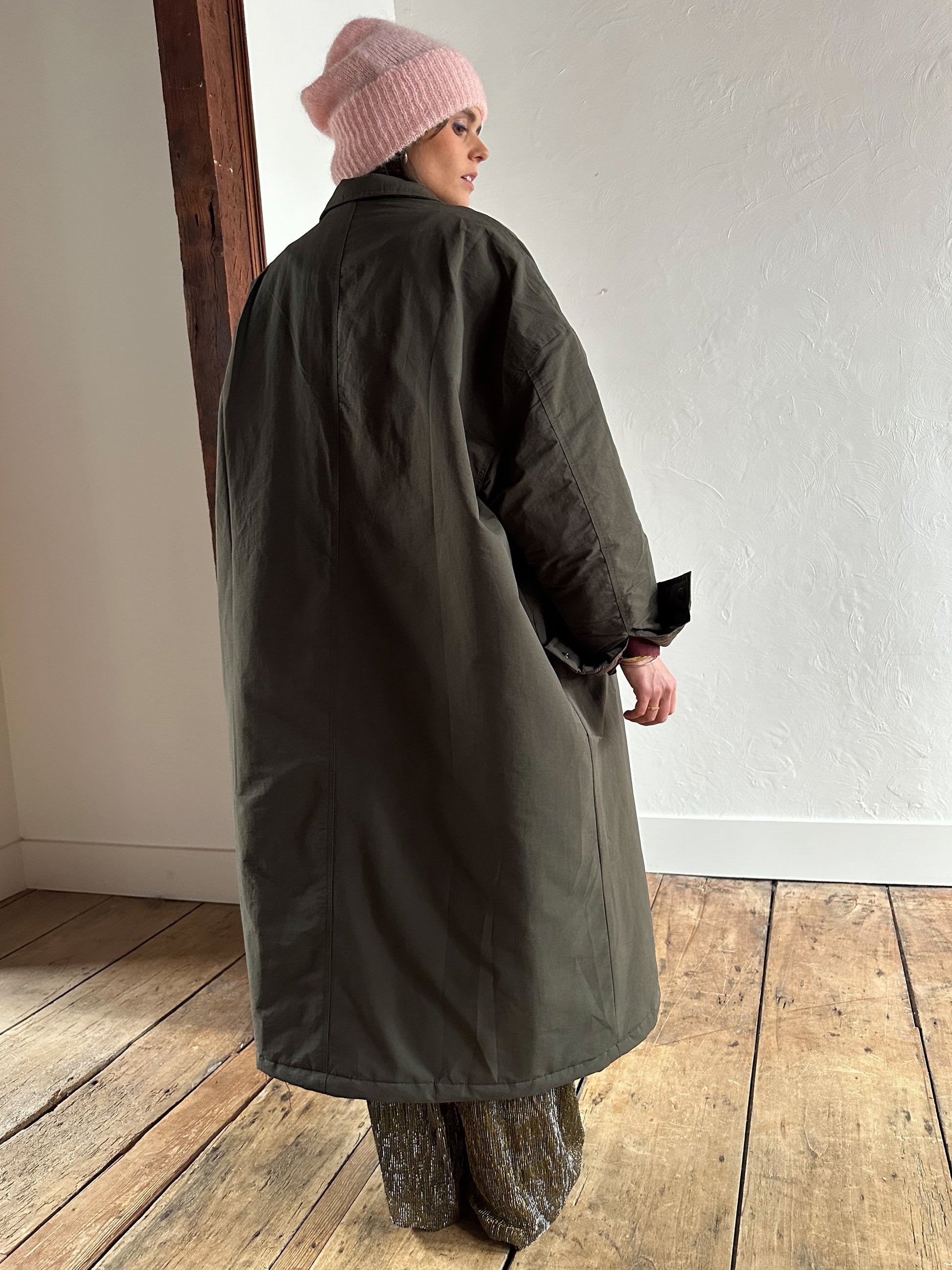 Its ultra-oversized cut and maximum length give it a decidedly modern and casual style, while remaining chic thanks to its deep Green color!