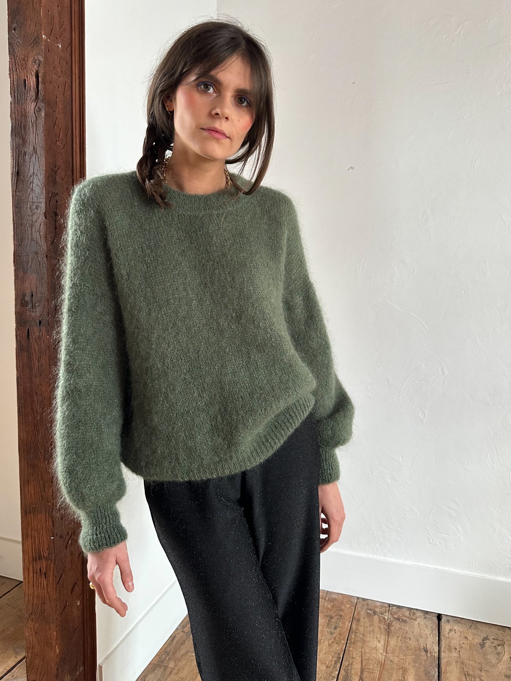 AUGUSTE Knitwear is a timeless essential for your wardrobe.Made in Italy and composed of over 75% mohair, a noble fiber that gives it softness, lightness and incomparable warmth, AUGUSTE Knitwear is a must-have for your wardrobe season after season.Its classic round-neck cut, combined with slightly puffed sleeves, offers a flattering silhouette and absolute comfort.