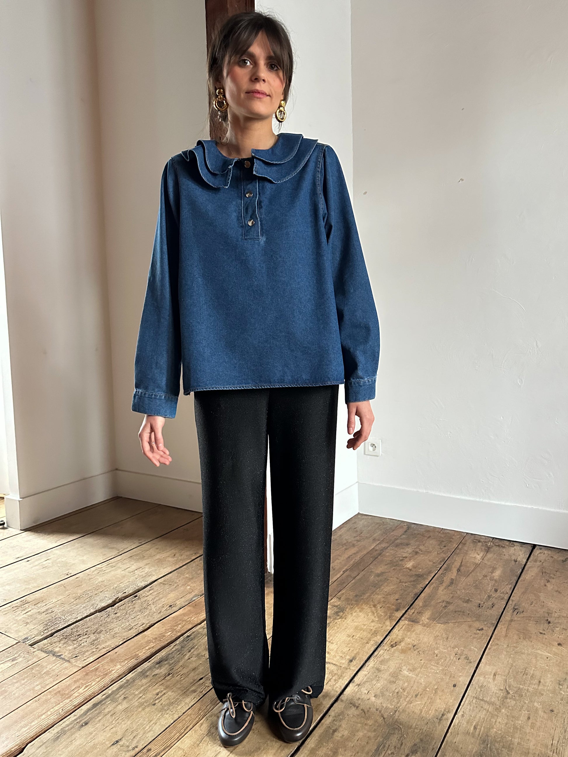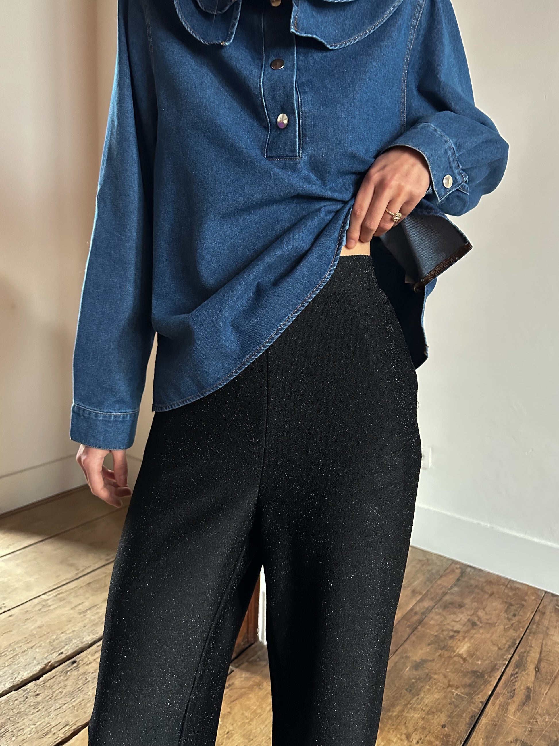 Élégant et lumineux, le pantalon BENJAMIN, fluide et légèrement pailletés, apporte juste ce qu’il faut d’éclat à vos tenues.