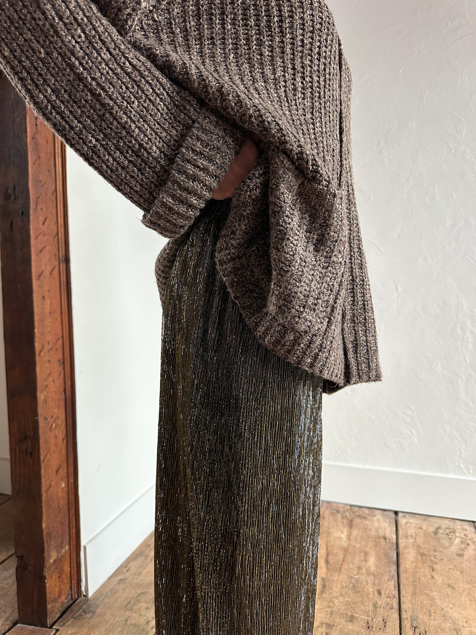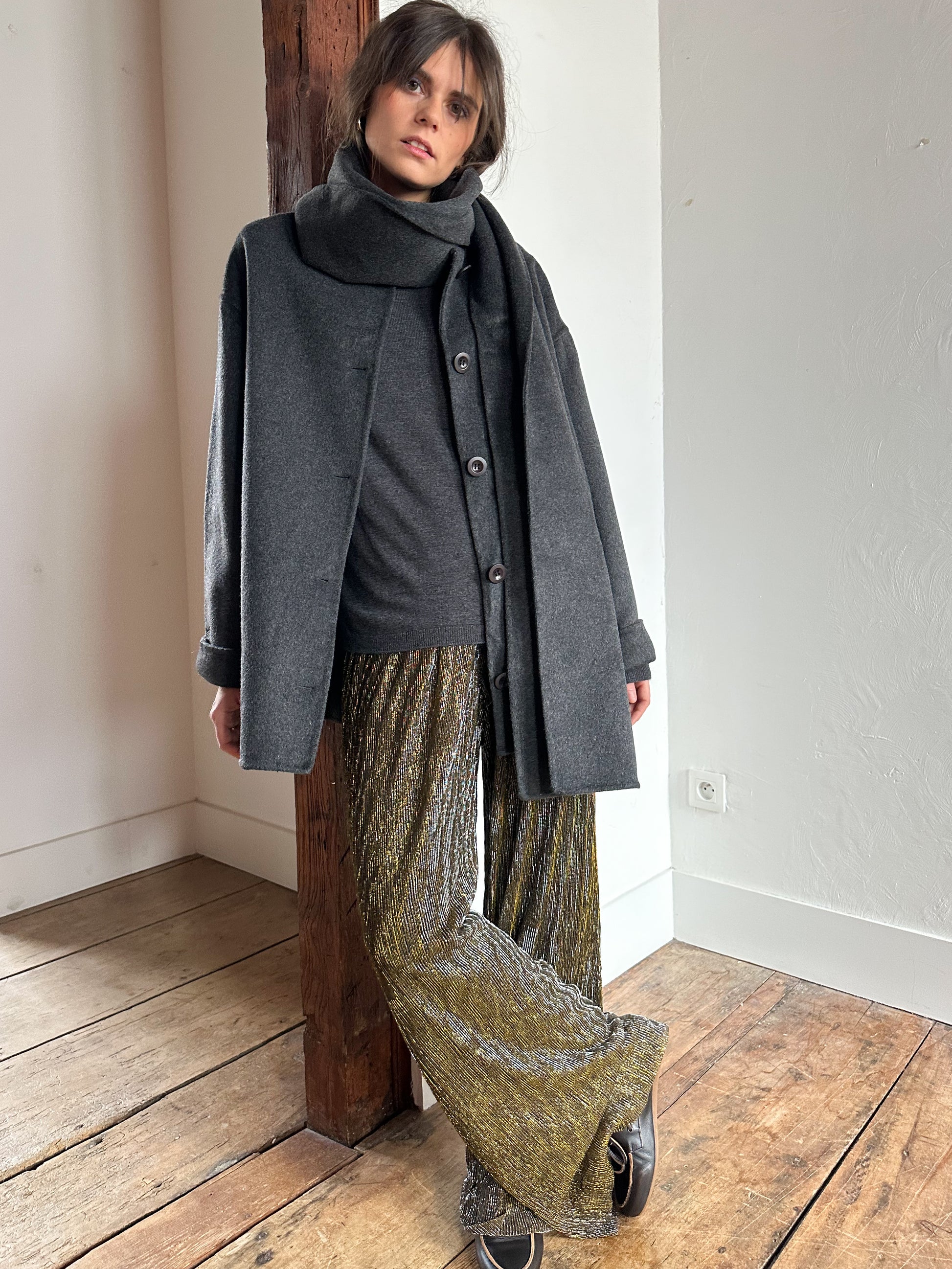 Le pantalon scintillant plissé à jambes larges MADDY est la pièce maîtresse idéale pour toutes vos occasions festives ou pour ajouter une touche de glamour à votre quotidien. Sa coupe fluide et son tissu texturé captent la lumière à chaque mouvement, garantissant une allure sophistiquée et audacieuse !