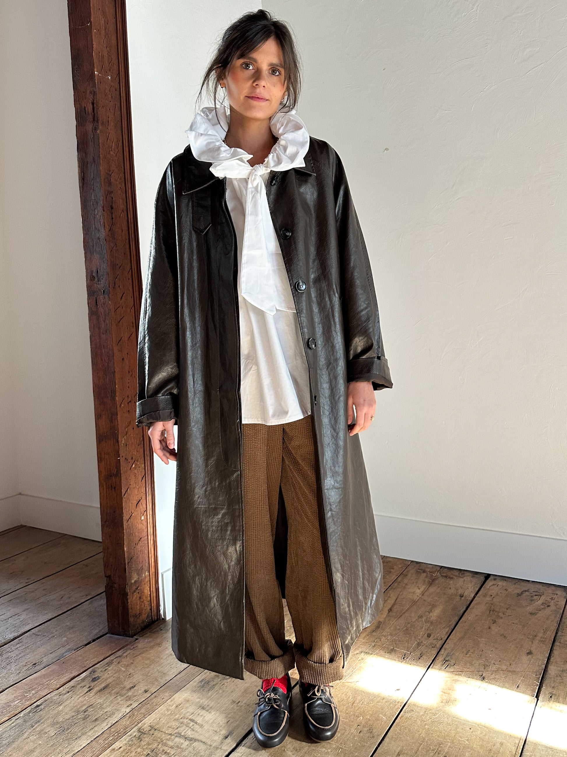 La blouse ODILE est une pièce intemporelle. Sa coupe ample et confortable est mise en valeur par un grand col à volants et des liens à nouer à l'encolure. Elle se marie avec tout, et peut être facilement glissée sous un pull ou un gilet pour laisser son beau col sophistiqué dépasser, apportant une touche romantique à votre tenue d'hiver.