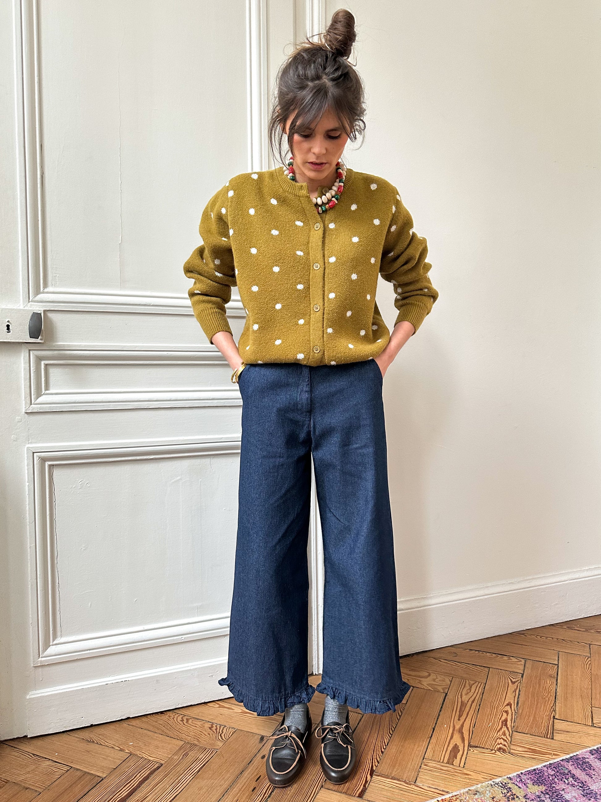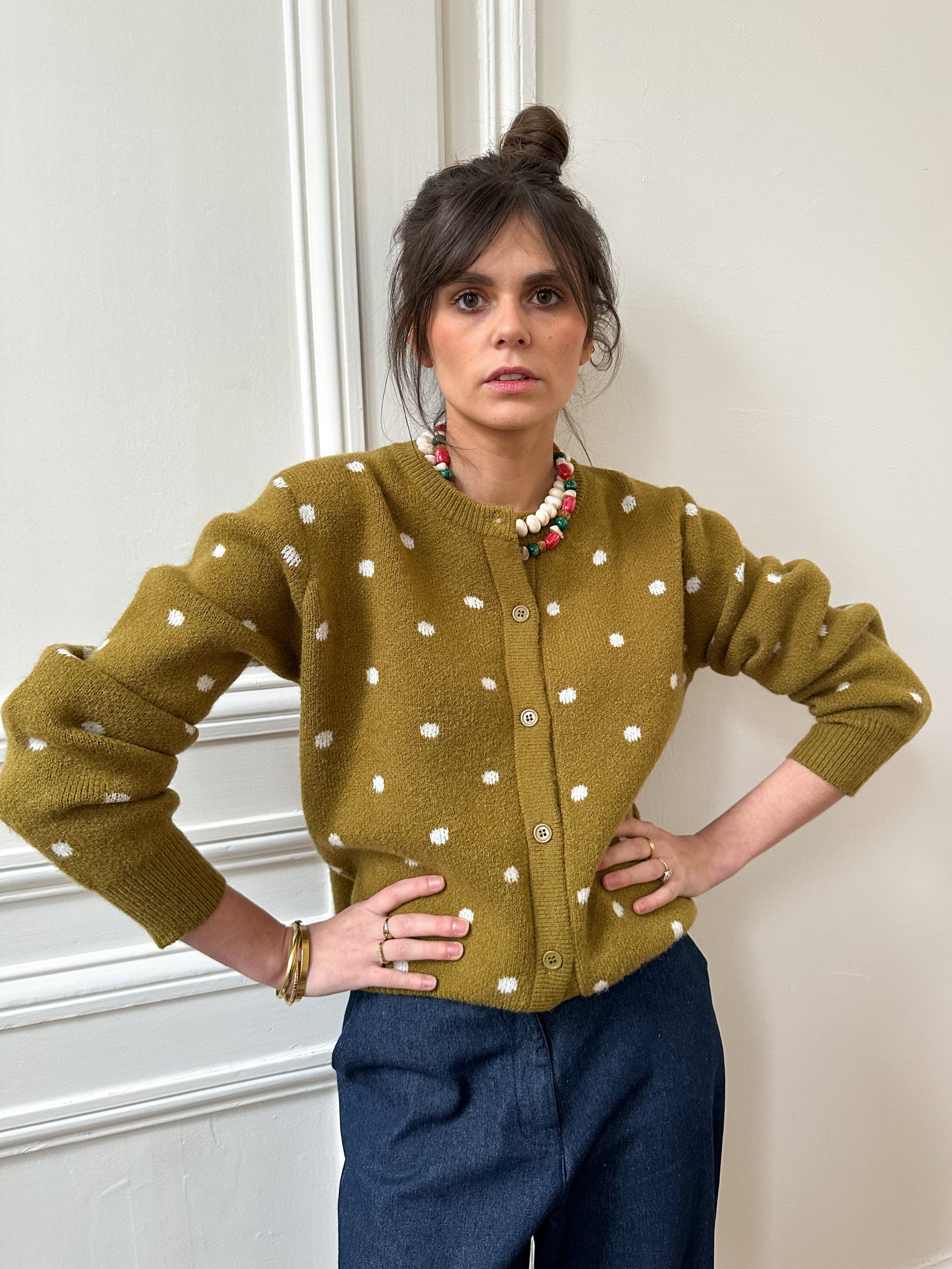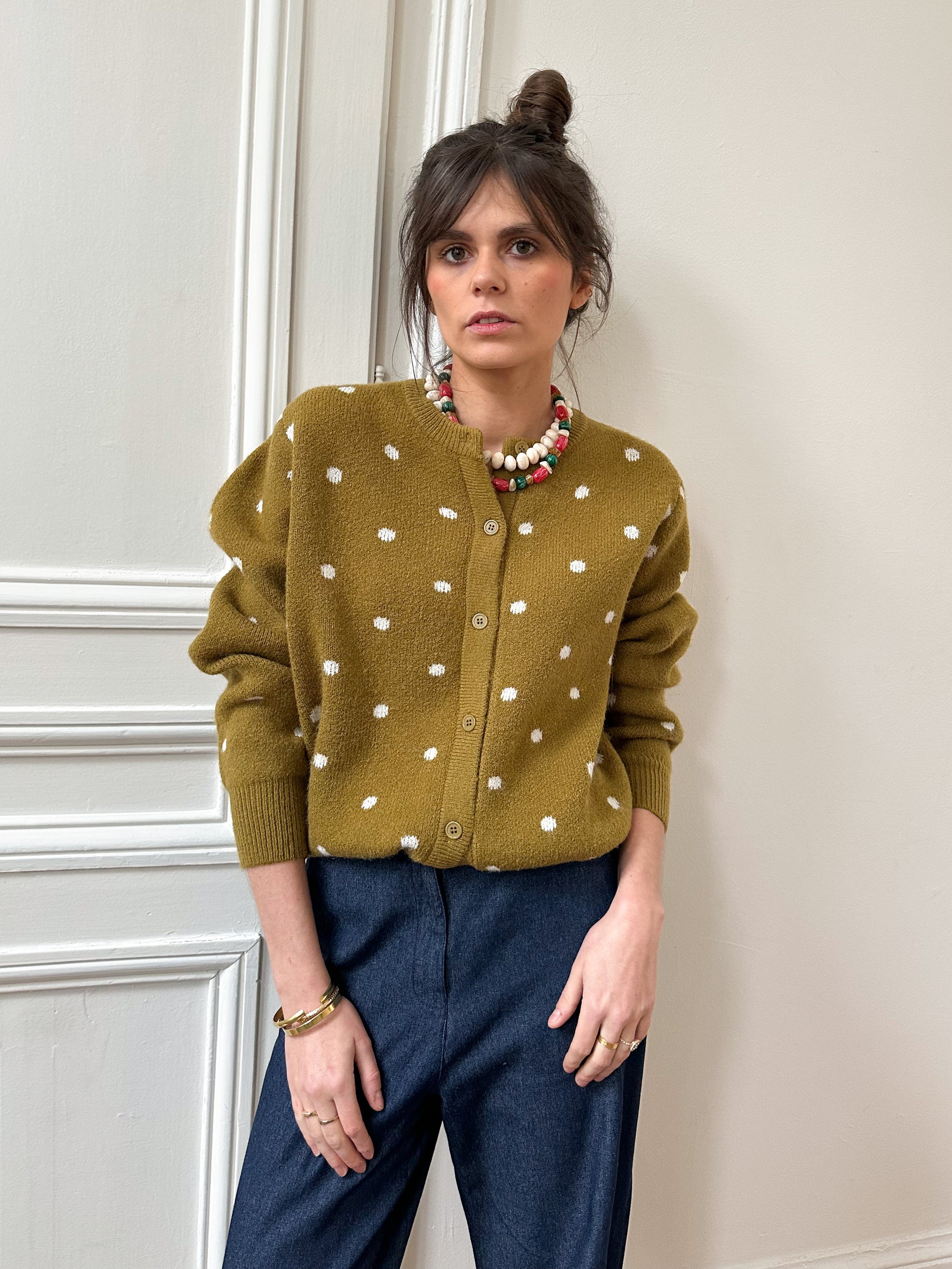 - Coloris vert olive à pois,