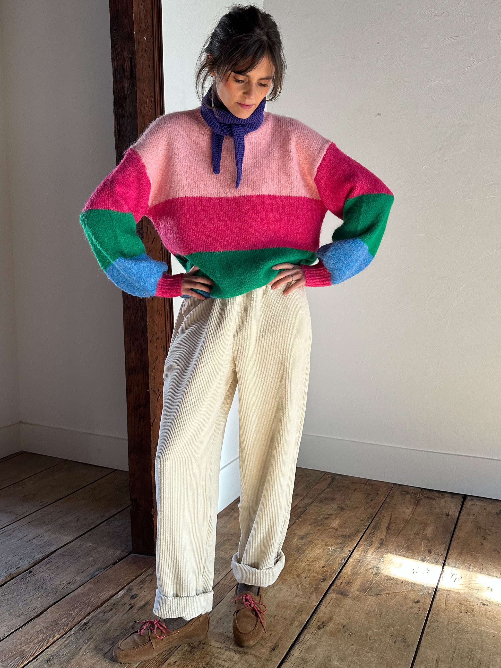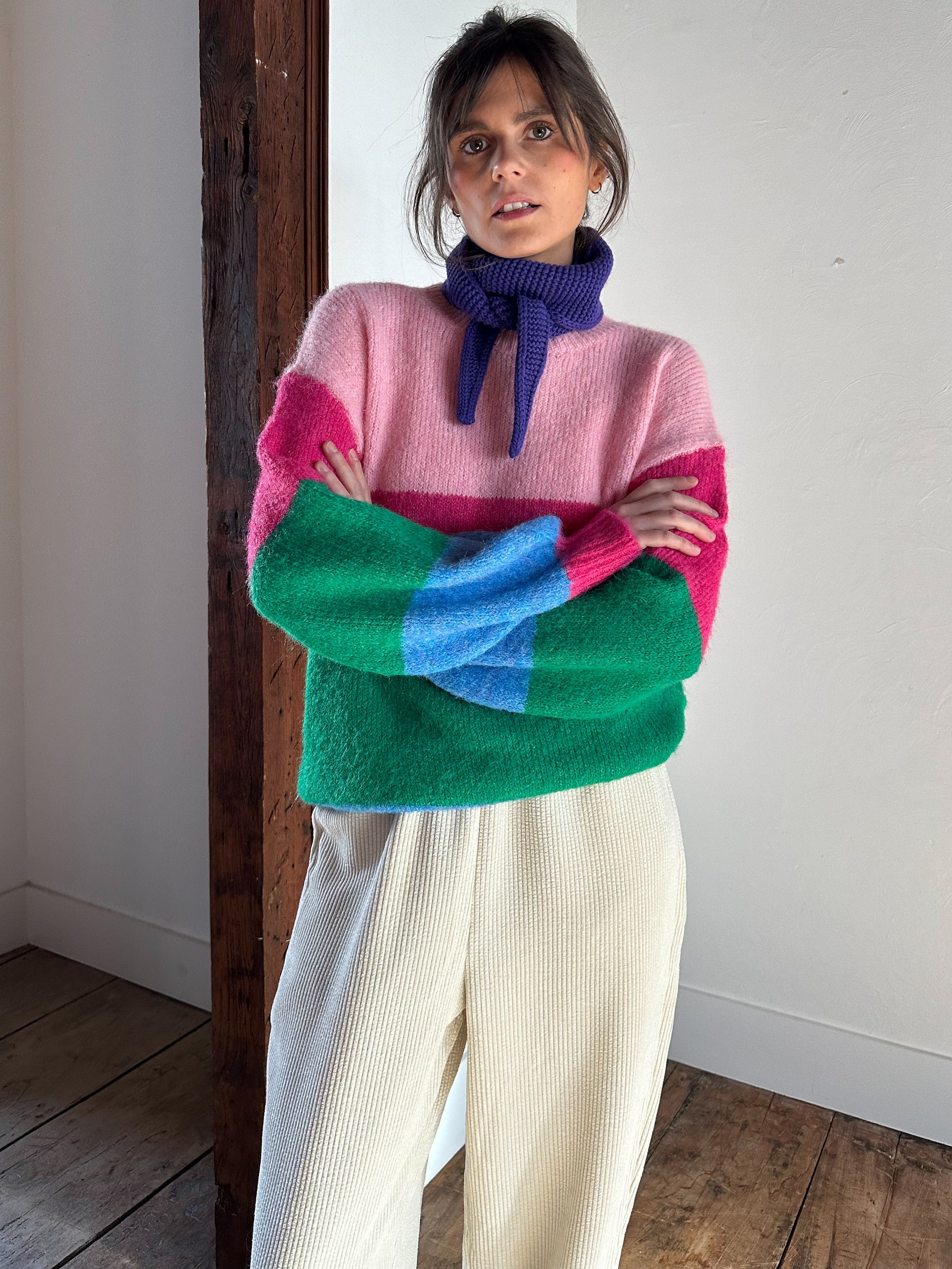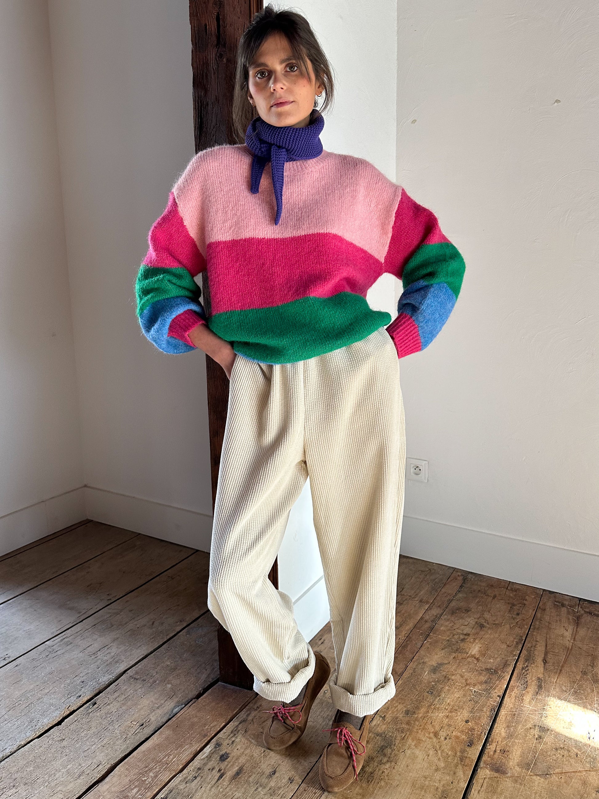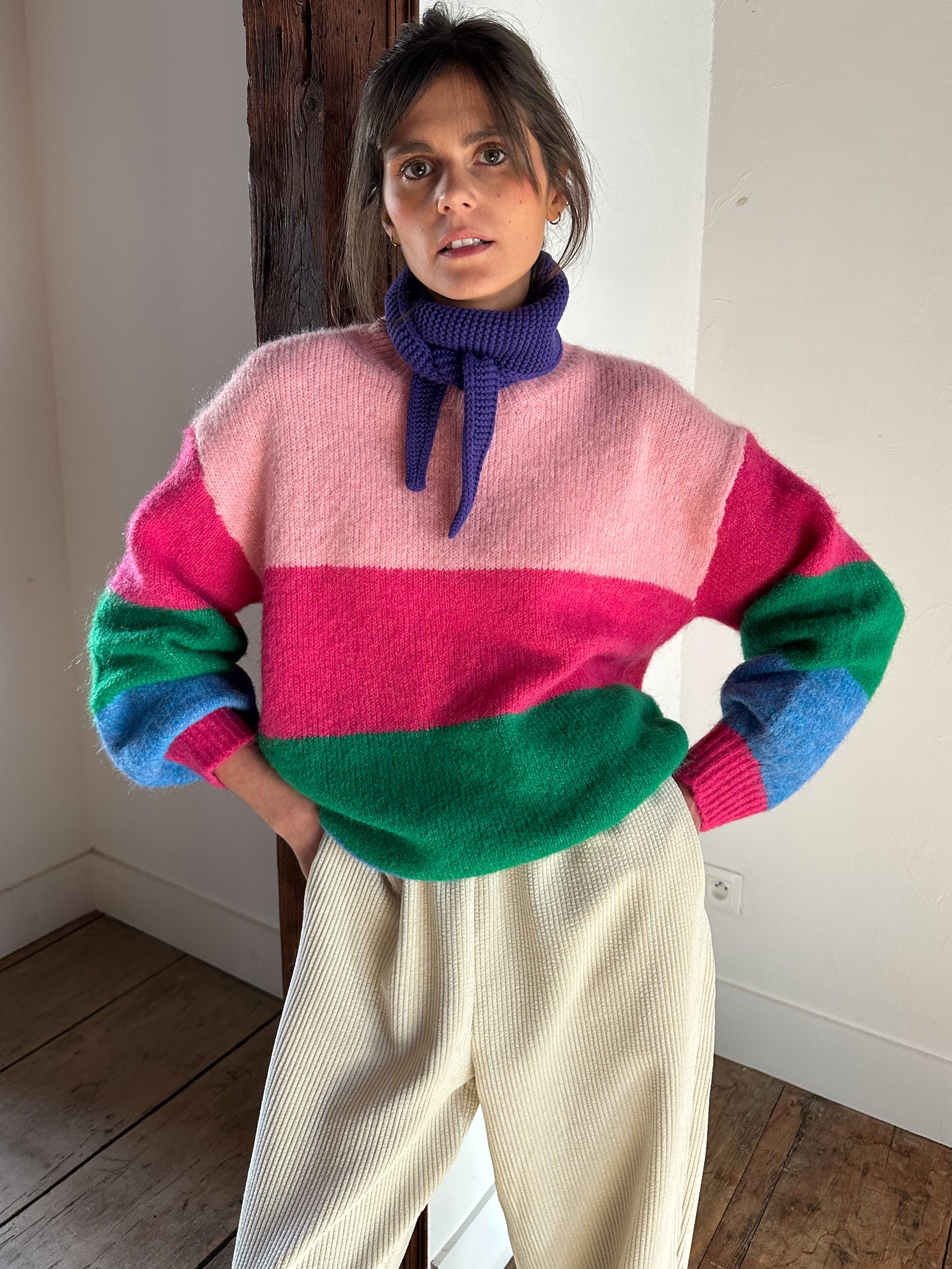 Craquez pour le pull léger à grosses rayures ELISE, l’allié parfait de la mi-saison.