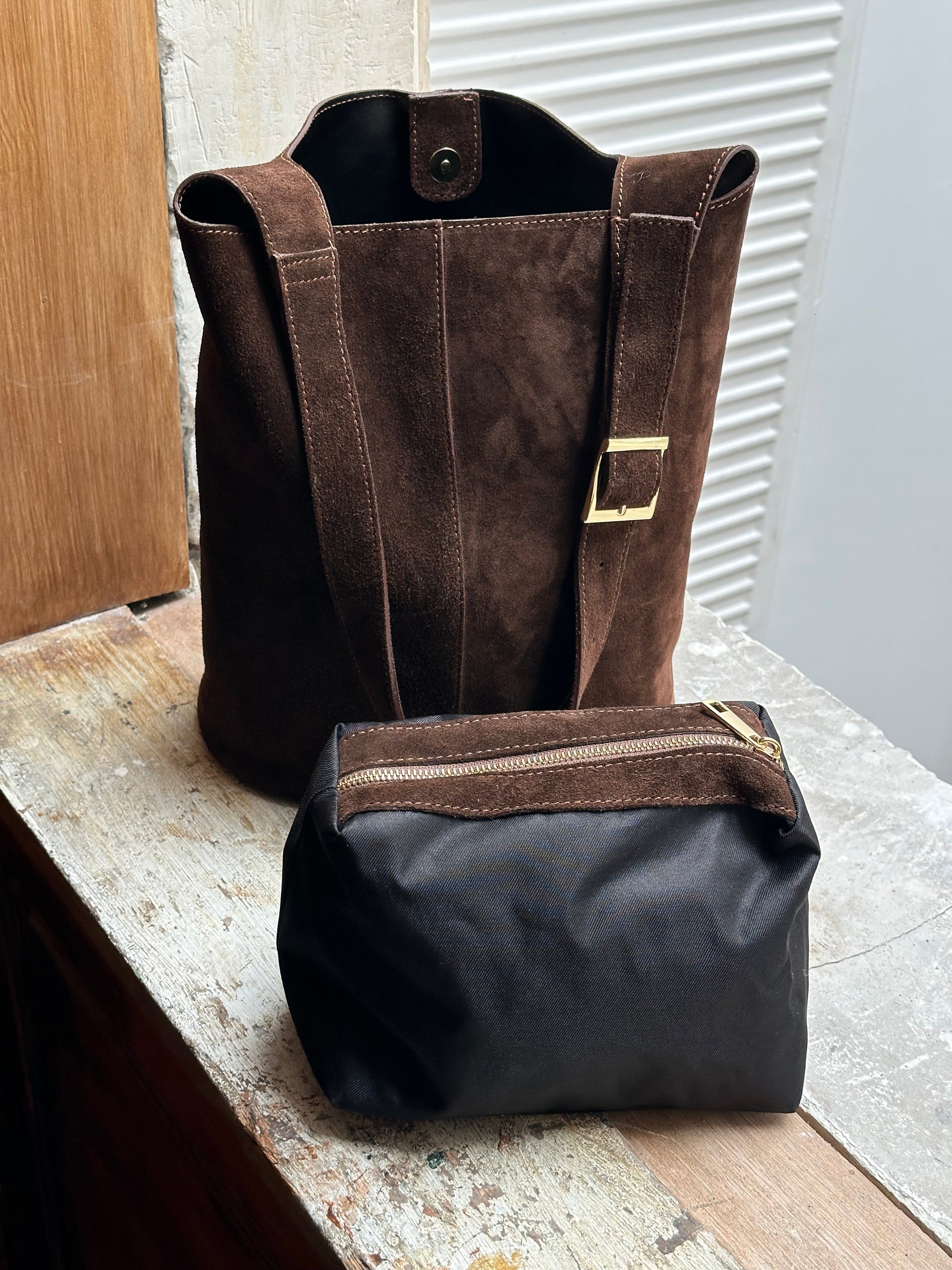 - Sac seau couleur chocolat,